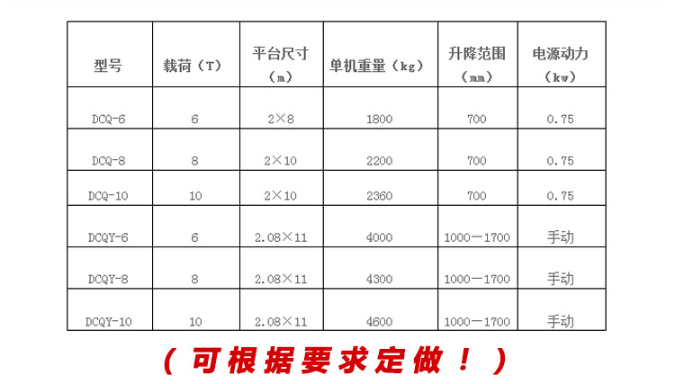 登車橋參數(shù):